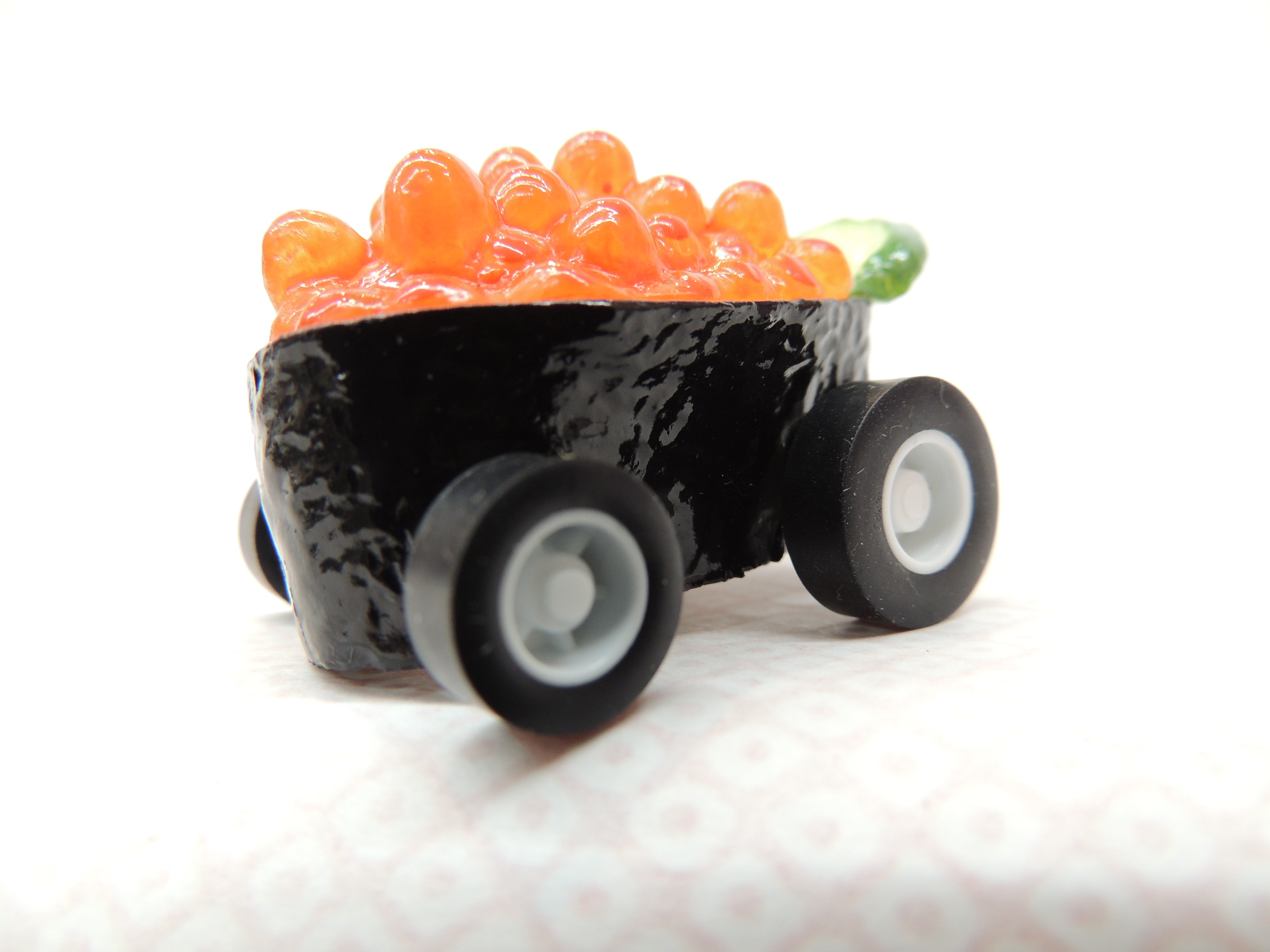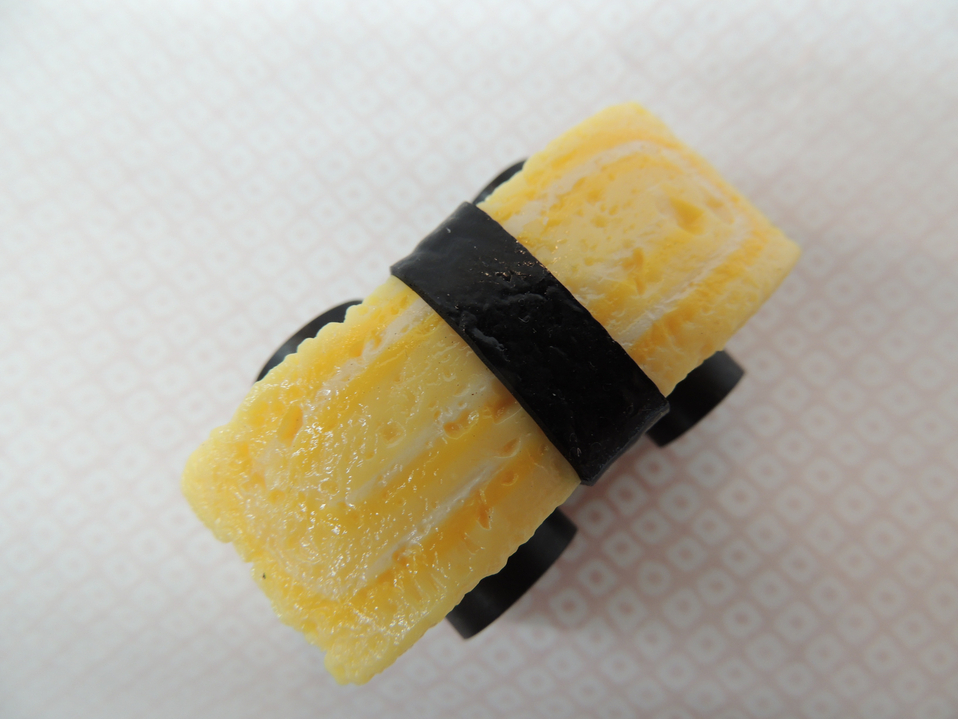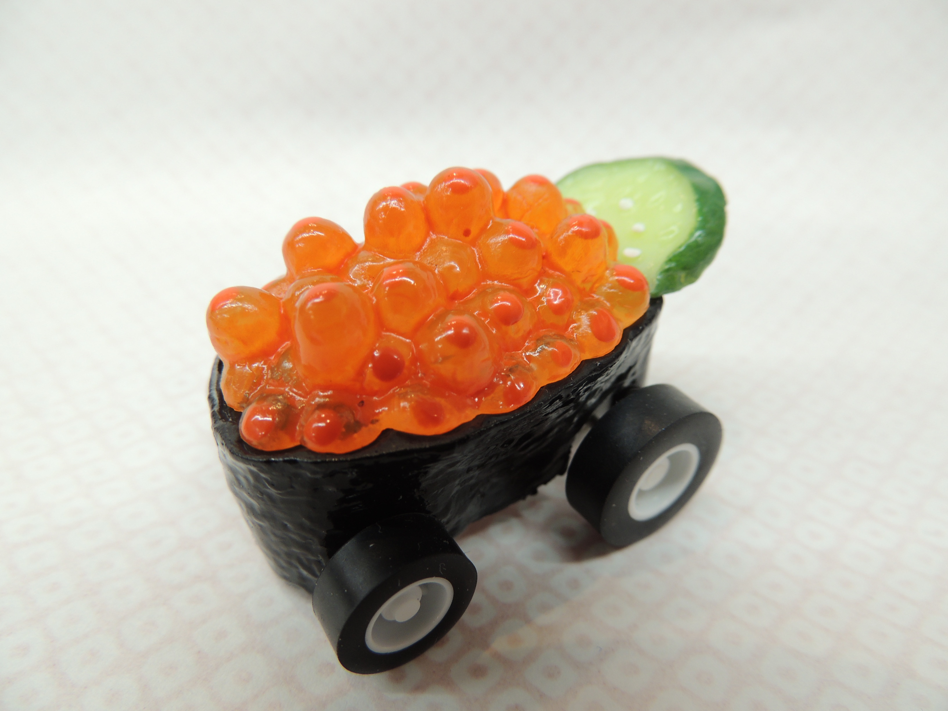 このお寿司、なんとチョロQなんです。走るお寿司はいかが?その名も寿司ブーン♪