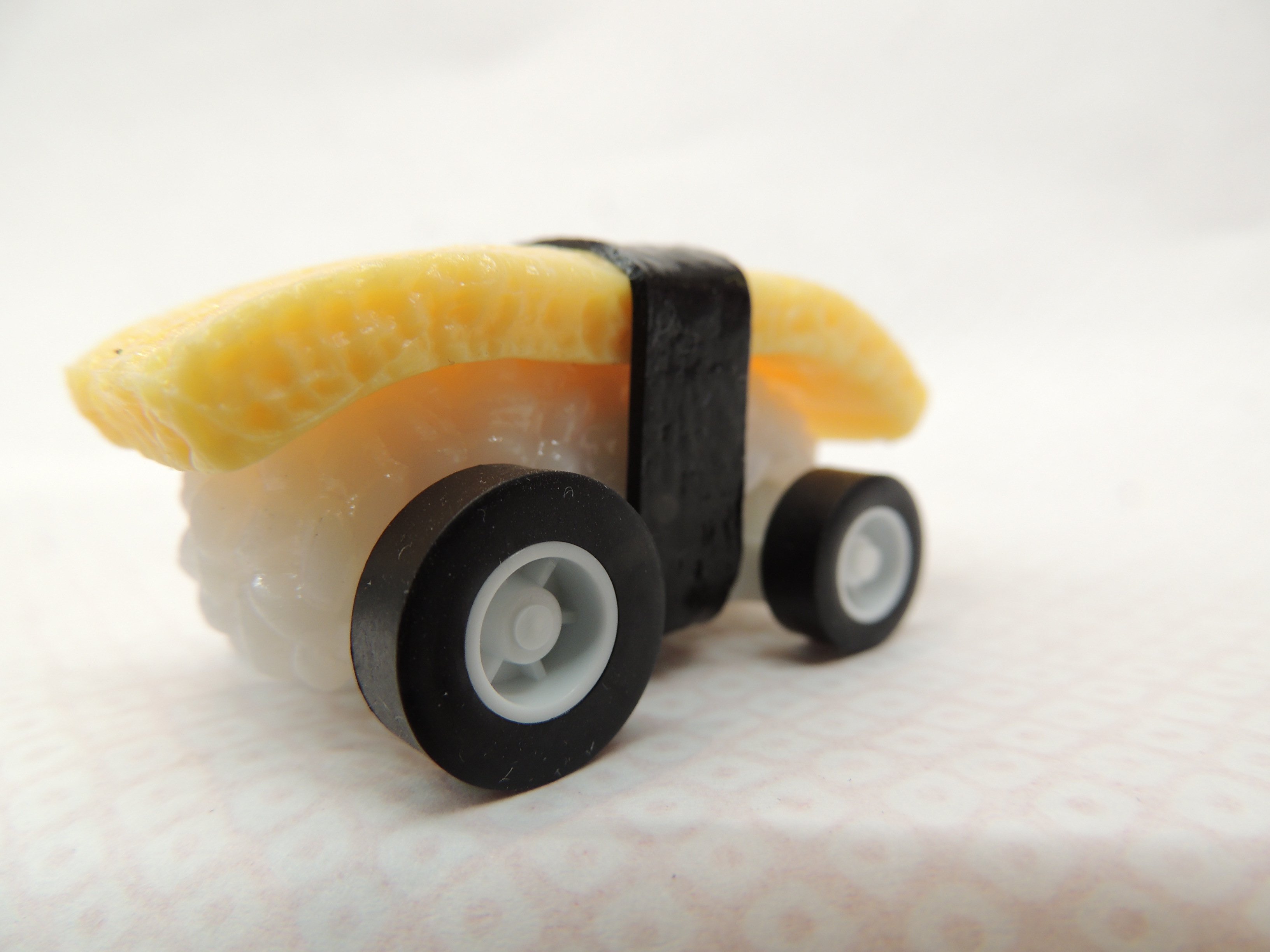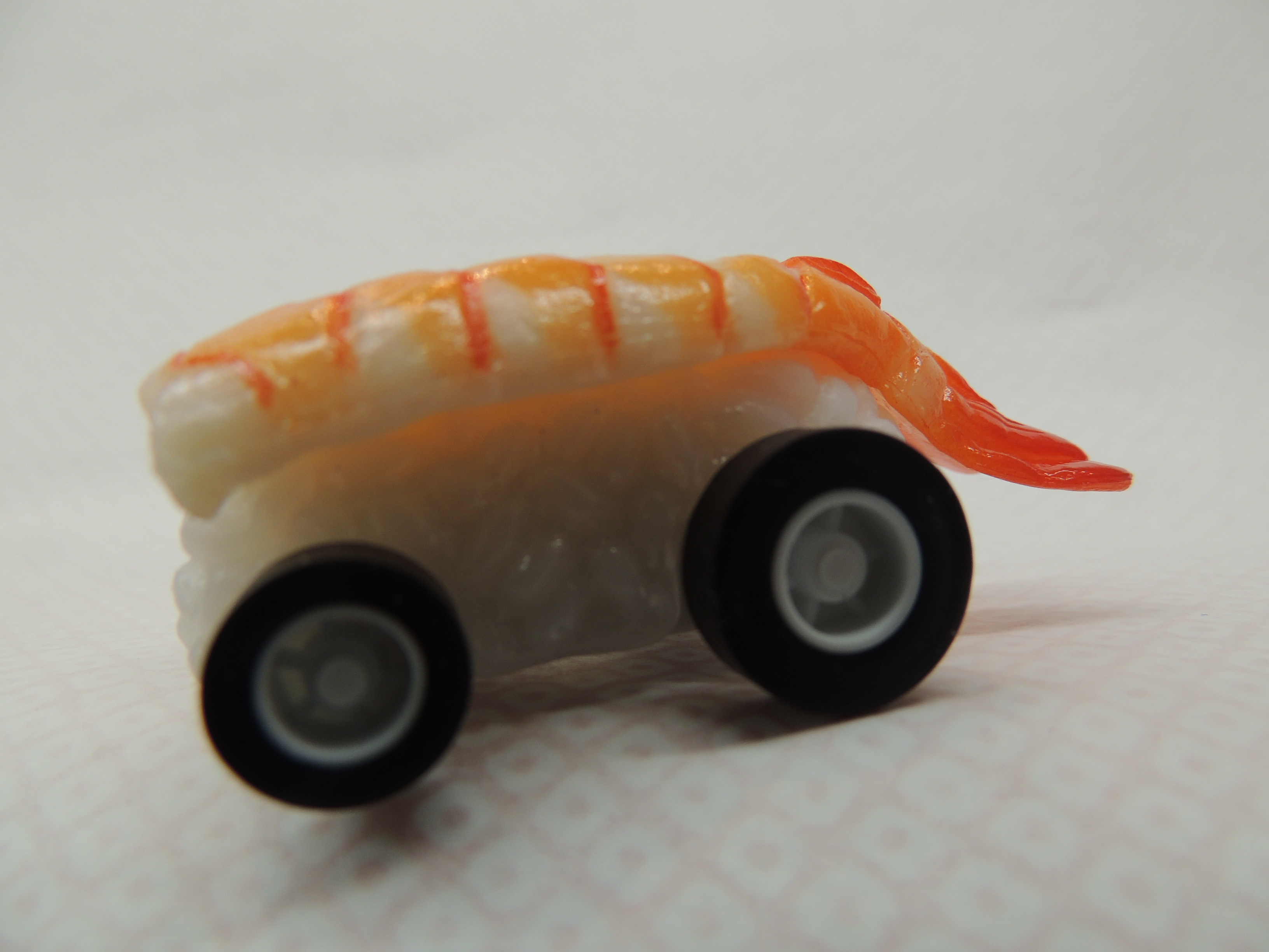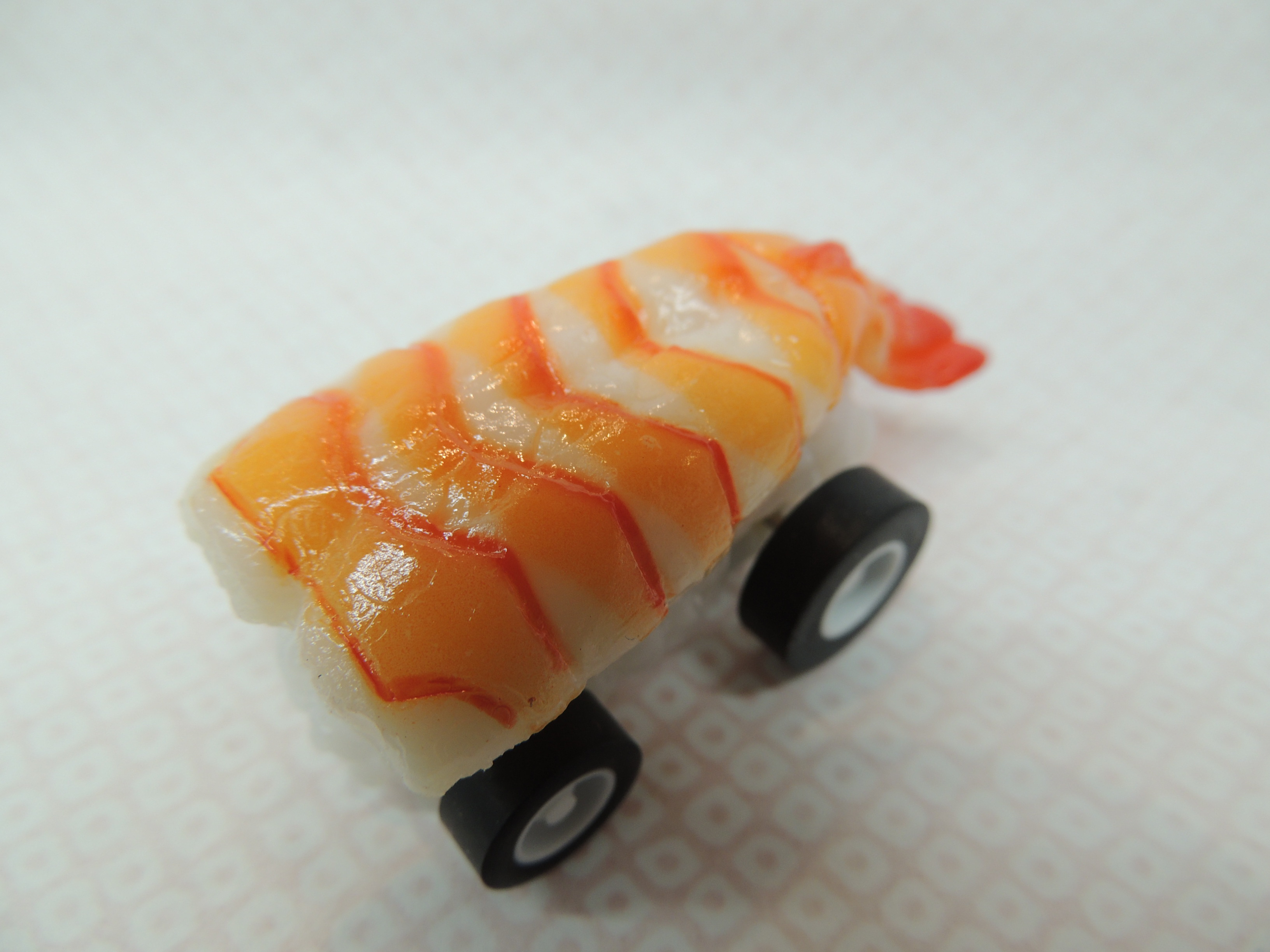 このお寿司、なんとチョロQなんです。走るお寿司はいかが?その名も寿司ブーン♪